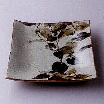 鉄絵どくだみ文角皿