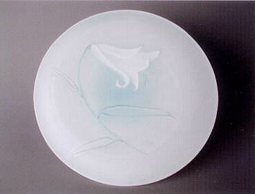 青白磁ササユリ文吊皿