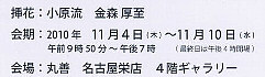 | 〔これまでの個展〕 松元洋一 展 2009. 1.22 -28 丸栄 松元洋一 展 2006.11.16-22 丸栄 松元洋一・金森厚至 展 2004.11.11-17 丸栄 松元洋一 日々のうつわ展 2002.11.22-28 ギャラリー栗本 松元洋一 日々のうつわ展 2002. 3.20 -25 近鉄四日市 松元洋一 日々のうつわ小品展 2000. 6.20 -27 ギャラリー栗本 松元洋一 日々のうつわ展 1999.11.22-28 ギャラリー栗本 |
