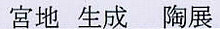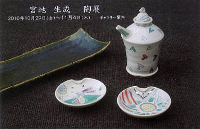 | 〔これまでの個展〕 宮地生成 陶展 2009. 4.16-22 丸栄 宮地生成 陶展 2008.10.25-31 ギャラリー栗本 宮地生成 陶展 2007. 5.30-6.5 JR名古屋高島屋 宮地生成 陶展 2006. 6.24-30 ギャラリー栗本 宮地生成 作陶展 2003.10.3- 9 ギャラリー栗本 宮地生成 陶展 2002. 4. 3- 9 JR名古屋高島屋 宮地生成 作陶展 2001. 4.24-30 ギャラリー栗本 宮地生成 作陶展 2000. 3.15-21 名古屋三越 |