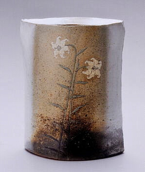 灰被花器 (百合の絵)