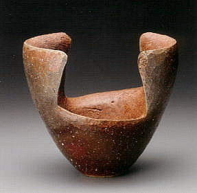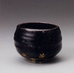 | 内田鋼一 「黒茶碗」 (径 12.0×高 9.3p) | 伊勢崎晃一朗 「備前花器」 (径 25.0×奥 21.0×高 22.5p) |