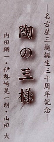 〔これまでの個展〕 伊勢崎晃一朗 陶展 2007.11. 3-11 画廊文錦堂 伊勢崎晃一朗 陶展 2007. 4.28-5.6 ギャラリー枯淡 伊勢崎晃一朗 2006.10.21-26 銀座黒田陶苑 作品→ 〔これまでの個展〕 山田 大 陶展 2010. 5. 6 -12 画廊 文錦堂 山田 大 作陶展 2009.11. 5 -11 丸栄 山田 大 作陶展 2008. 5.15 -21 丸栄 作品→ |