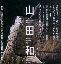 | 〔これまでの個展〕 山田 和 作陶展 2009. 4.11-19 画廊 文錦堂 山田 和 展 2008.11.20-26 丸栄 山田 和 食の器展 2007.10. 4 -10 丸栄 作陶30年 山田 和 展 2006.11.23-29 丸栄 山田 和 展 2004.11.25-12.1 丸栄 山田 和 志野茶碗展 2002.11.28-12.3 丸栄 山田 和 志野茶碗展 2001.12.11-17 日本橋三越 山田 和 陶展 2001.10. 2 -13 橋本美術 山田 和 作陶展 2000.11.30-12.5 丸栄 |