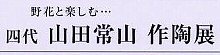 | 〔これまでの個展〕 四代 山田常山 作陶展 2011. 1.19 -25 日本橋三越 四代 山田常山 作陶展 2010.10.29-11.8 ギャラリーCEPICA 四代 山田常山 作陶展 2009.10.30-11.8 陶芸サロン 陶美園 山田常山 作陶展 2009. 5.20 -26 名鉄アートギャラリー 山田常山 作陶展 2008.10.31-11.9 ギャラリーCEPICA 山田常山 作陶展 2008. 5.21 -27 名鉄アートギャラリー 四代襲名記念 山田常山 作陶展 2007. 5.23 -29 名鉄アートギャラリー 山田絵夢 作陶展 2006. 5.24 -30 名鉄アートギャラリー 山田絵夢 作陶展 2005. 5.18 -25 名鉄アートギャラリー 山田絵夢 作陶展 2001. 5.23 -29 名鉄アートギャラリー 山田絵夢 作陶展 1999. 5.25 -31 名鉄アートギャラリー |