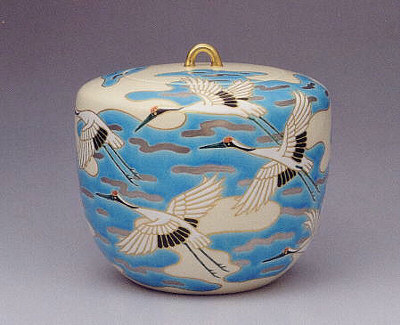 十七代 永樂善五郎 作 瑞雲ニ鶴水指