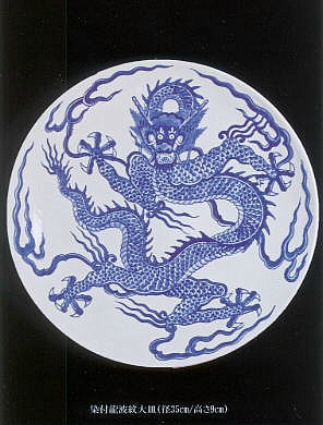 染付龍波紋大皿 (径 35p/高さ 9p)