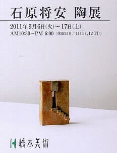 | 〔これまでの個展〕 石原将安 陶展 2009.7.21-8.1 橋本美術 石原将安 皿展 2008.3. 3 -10 工芸ギャラリー手児奈 石原将安 陶展 2007.7.17-28 橋本美術 石原将安 陶展 2005.5.24-6.4 橋本美術 石原将安 陶展 2001.6.26-7.7 橋本美術 |