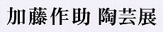| 〔これまでの個展〕 五代 加藤作助 作陶展 2008.11. 5-11 JR名古屋高島屋 五代 加藤作助 作陶展 2007. 7.18-23 松坂屋 五代作助 加藤伸也 作陶展 2006. 1. 2 -10 JR名古屋高島屋 五代作助 加藤伸也 作陶展 2003. 1. 2 - 7 JR名古屋高島屋 五代作助 加藤伸也 作陶展 2001. 1. 2 - 9 JR名古屋高島屋 |