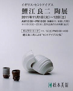 | 〔これまでの個展〕 鯉江良二 展 2011.10. 4 - 9 名鉄 鯉江良二 陶展 2009. 6.23-7.4 橋本美術 鯉江良二 作陶展 2008.10.21-27 名古屋三越 鯉江良二 展 2008. 4. 1- 6.30 パラミタ ミュージアム 鯉江良二 陶展 2007.11. 9-24 ギャラリー顕美子 鯉江良二 陶展 2007. 6.19-30 橋本美術 鯉江良二 陶展 2006. 9. 6 -12 名鉄 鯉江良二 陶展 2005. 9. 7 -13 名鉄 鯉江良二 陶展 2005. 6.21 - 7. 2 橋本美術 鯉江良二 陶展 2004.11.20-12.4 ギャラリー顕美子 鯉江良二 陶展 2003. 7. 26- 8. 9 ギャラリー顕美子 鯉江良二 陶展 2003. 6. 17- 28 橋本美術 鯉江良二陶展 2002. 9. 20-10.1 ギャラリー顕美子 鯉江良二陶展 2002. 6. 18- 29 橋本美術 鯉江良二Made in SEATTLE 2000. 7. 12- 18 名鉄 鯉江良二陶展 2000. 7. 15- 29 ギャラリー顕美子 鯉江良二器展 1999. 7. 14- 20 名鉄 |