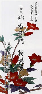| 〔これまでの個展〕 十四代 酒井田柿右衛門 展 2010.11.17-23 松坂屋 十四代 酒井田柿右衛門 展 2008.11.12-18 松坂屋 十四代 酒井田柿右衛門 展 2008.9.19-24 近鉄四日市 十四代 酒井田柿右衛門 展 2005.11.23-29 松坂屋 十四代 酒井田柿右衛門 展 2003. 9.17 -21 近鉄四日市 |