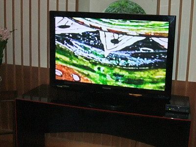 | メンバー作品のスナップショット(by 世良公則)がDVDで流されている | 暁坏メンバーの代表作も展示されていた |