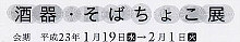 | やきもの伝統の地で意欲的に創作活動に取り組む 若手作家を主体とした酒器・そばちょこ展。出展作家 数・出展作品数ともに充実した内容で、初めて作品に 出会った作家さんも多数含まれ、じっくり見て回り楽し ませていただいた。 2011.1.19 |