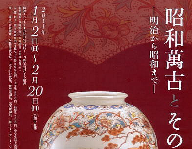 | パラミタミュージアムが地元萬古焼の歴史的工芸品を保存するため行った大規模 蒐集の中から、主に昭和期に製作された逸品を一同に展覧した企画展である。多彩 な図案の赤絵・色絵茶器・花器や萬古焼を象徴する盞瓶・急須など、細かい手仕事 の技術を駆使した作品から、世界に出て行こうとする当時の意気込みが伝わってくる。 中でも、広重の東海道五十三次を一つずつ線彫りで描いた伊藤泰月の急須は見応 えがあった。他に誇れる地元の伝統工芸であることを再認識した。 2011.1.9 |