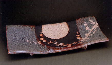 | 年頭を飾る松坂屋の陶芸展は、美濃陶 芸界の重鎮、若尾利貞氏の新作展であ る。志野の技法で寿ぎの文様を描く新作 は、年頭に相応しい雰囲気を湛えている。 とりわけ、心温かく見る者を包み込むよう な「志野大鉢」の緋色が印象に残った。 2011.1.2 |