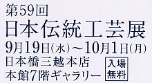 | k‚±‚ê‚܂ł̌“Wl @‘æ‚T‚W‰ñ@“ú–{“`“HŒ|“W@@2011.10. 5-10 @ –¼ŒÃ‰®ŽO‰z @‘æ‚T‚V‰ñ@“ú–{“`“HŒ|“W@@2010.10. 6 -11 @–¼ŒÃ‰®ŽO‰z @‘æ‚T‚U‰ñ@“ú–{“`“HŒ|“W@@2009.10. 6 -12 @–¼ŒÃ‰®ŽO‰z @‘æ‚T‚R‰ñ@“ú–{“`“HŒ|“W@@2006.10.11-16 @–¼ŒÃ‰®ŽO‰z @‘æ‚T‚P‰ñ@“ú–{“`“HŒ|“W@@2004.10. 6-11 @ –¼ŒÃ‰®ŽO‰z @‘æ‚T‚O‰ñ@“ú–{“`“HŒ|“W@@2003.10.15-20@ –¼ŒÃ‰®ŽO‰z @‘æ‚S‚X‰ñ@“ú–{“`“HŒ|“W@@2002.9.24-10.4@“ú–{‹´ŽO‰z @‘æ‚S‚W‰ñ@“ú–{“`“HŒ|“W@@2001.9.25-10.7@“ú–{‹´ŽO‰z @‘æ‚S‚U‰ñ@“ú–{“`“HŒ|“W@@1999.9.21-10.3@“ú–{‹´ŽO‰z |