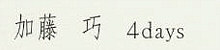 | 〔これまでの個展〕 加藤 巧 茶碗2011 2011. 4. 1 - 9 ぎゃらりい和 加藤 巧「陶と蒐集」 2009. 4.10-20 月日荘 加藤 巧 陶展 2008.10.14-25 ギャルリ・ディマージュ 加藤 巧 器展 2008. 7.12 -21 古民芸 昔屋 加藤 巧 作品展 2007.11.23-12.2 Rail 加藤 巧 器展 2007. 7.14 -22 古民芸 昔屋 加藤 巧 作品展 2006.12. 2 -10 Rail 加藤 巧 作陶展 2006. 8.16 -22 名鉄アートギャラリー |