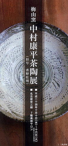 | 〔これまでの個展〕 中村康平 茶碗展 2012. 2.28-3.10 橋本美術 中村康平 茶陶展 2010. 9.29-10.5 名古屋三越 中村康平 陶展 2010. 3.16 -27 橋本美術 中村康平 茶碗展 2008.10.14-25 橋本美術 中村康平 茶陶展 2008. 9. 2- 8 名古屋三越 中村康平 楽茶碗展 2007.10.16-27 橋本美術 |