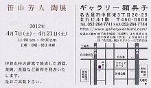 | 笹山芳人 陶展 | 2011.4. 9 -23 | ギャラリー顕美子 | ||||||||