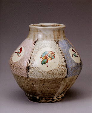象嵌赤絵草花文壷 径 23.1×高 23.5p