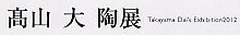 | これまでの個展〕 高山 大 展 2011. 6.16-22 ギャラリー エスパス 高山 大 陶展 2010. 9.30-10.11 山 画廊 高山 大 陶展 2009. 8. 2-30 galerie TURM 高山 大 陶展 2009. 6. 6-21 ギャラリー芽楽 高山 大 陶展 2008. 7. 1 -13 パラミタミュージアム 高山 大 展 プリミティブモダン 2007.11. 8-14 ギャラリー エスパス 高山 大+松川和弘 二人展 2007. 3. 7-13 松坂屋 高山 大 松川和弘 陶と磁 2007. 1. 2 -30 パラミタミュージアム 高山 大 展 2006. 2.16-27 画廊喫茶 パラス 高山 大 展 古代への航路 2005.10.27-11.2 ギャラリー エスパス 高山 大 clay works 2005 2005. 5.11 -17 ギャラリー スミ 高山 大の陶 展 2003 .8.20 -25 近鉄四日市 |