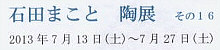 | 〔これまでの個展〕 石田まこと 陶展 石田まこと 陶展 石田まことの南蛮 石田まこと 甘茶 陶展 石田まこと 甘茶 陶展 石田まこと 土焼きのうつわ展−その十− 石田まこと 土焼きのうつわ展−その九− 石田まこと 土焼きのうつわ展−その七− 石田まこと 土焼きのうつわ展−その五− |
