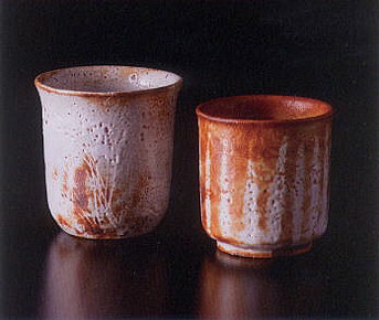 志野ゆのみ二 左:高 8.8×径 8.2p 右:高 7.8×径 7.9p |