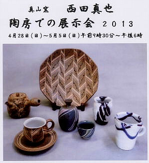 西田真也 展示会 2012. 4.29-5.6 陶房 真山窯 西田真也 展示会 2011. 5. 1 -8 陶房 真山窯 西田真也 展示会 2010. 4.29-5.6 陶房 真山窯 西田真也 展示会 2009. 4.29-5.6 陶房 真山窯 西田真也 展示会 2004. 4.29-5.5 陶房 真山窯 西田真也 展示会 2003. 4.29-5.6 陶房 真山窯 西田真也 展示会 2001. 4.28-5.3 陶房 真山窯 |