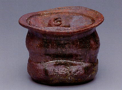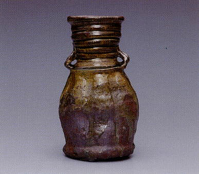| 「茜志野茶碗」 12.0×12.0×高さ 9.0p | 「伊賀へら目耳付花入」 15.5×15.5×高さ 27.5p |