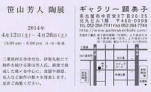| 笹山芳人 陶展 | 2013. 3.16-30 | ギャラリー顕美子 | ||||||||||||||||
