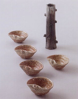 | 信楽大壺 (径 42.5×高さ 49.5p) | 竹形花入 (径 10.0×高さ 31.5p) 片口向付 (径 12.5×奥行 15.0)×高さ 6.8p |