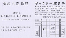 | 柴垣六蔵 陶展 | 2013.10.26-11.9 | ギャラリー 顕美子 | |||||||||||||||