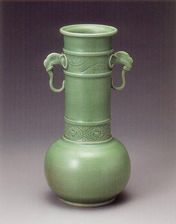 高麗青磁象耳花入