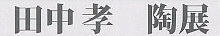 | 田中 孝 作陶展 | 2011. 9.14-20 | 松坂屋 | |||||||||||||||||||||||||||||||||||||||