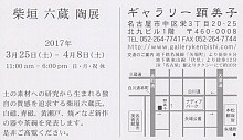| 柴垣六蔵 陶展 | 2016. 3.12-26 | ギャラリー 顕美子 | |||||||||||||||||||||||||||||||