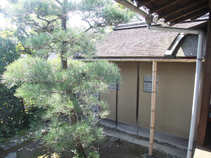 さらに東側にまわれば、外壁には二つの下地窓が並び 三代目「豊公袖摺の松」が生える